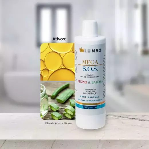 A linha Mega S.O.S conta com uma fórmula enriquecida com Babosa, Óleo de Rícino e o exclusivo complexo de ativos umectantes, que proporcionam hidratação intensa, fortalecimento da fibra capilar e brilho desde a primeira aplicação.